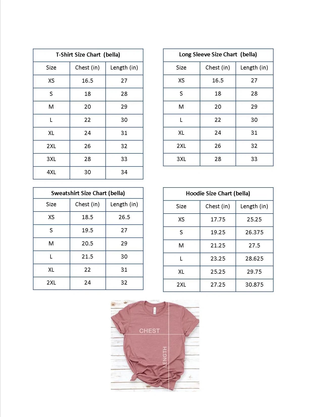 Please view the attached photos for size measurements. It is best to lay your favorite shirt flat and measure arm pit to arm pit for width. For length measure from the shoulder down.
